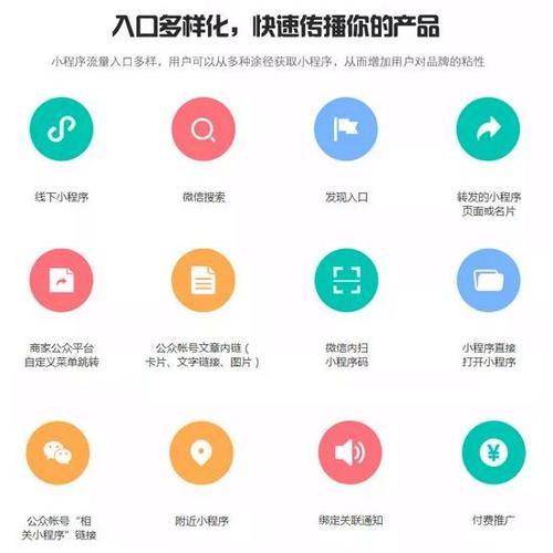 附近的小程序列表、附近的小程序列表广告、公众号相关小程序列表、公众号自定义菜单、公众号模板消息、公众号文章、公众号文章广告、发现栏小程序入口、小程序模板消息、前往体验版的入口页、安卓系统的桌面图标等等。