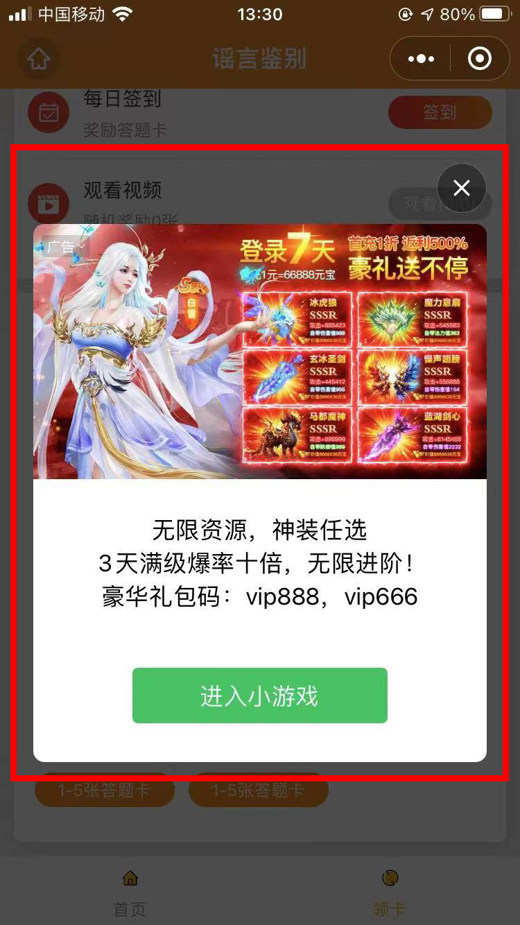 下面2张两张图片就是我们做好小程序里的广告!就是我红笔标记的地方就是广告!我们点击看这个广告!我们就会有收益!